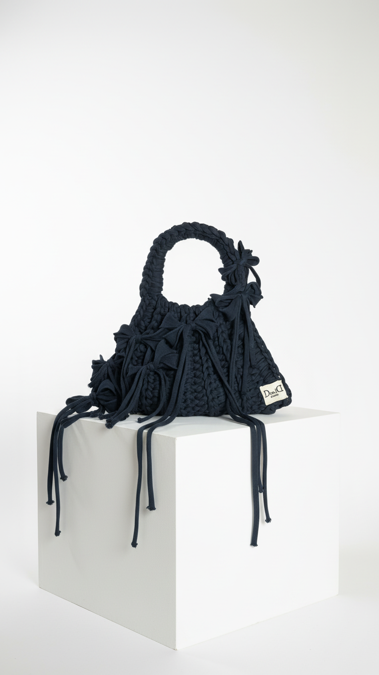 Ručne háčkovaná veľká kabelka so silnou chunky štruktúrou a bohato ruchovanými strapcami, ktoré jej dodávajú živý, pohyblivý vzhľad.
