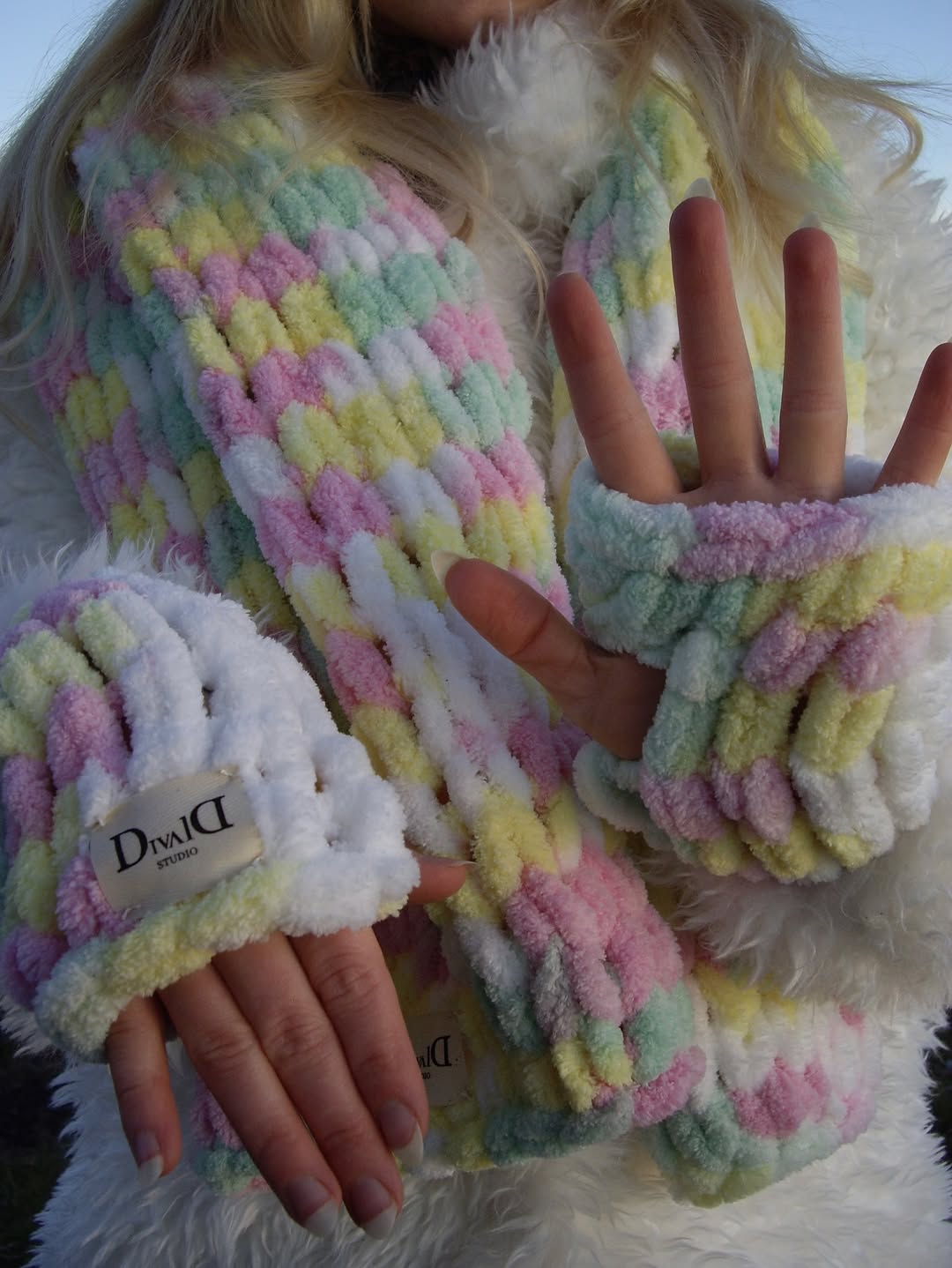 Ručne pletené rukavice, ktoré sú hrejivé, pohodlné a dokonale ladia k celému setu.